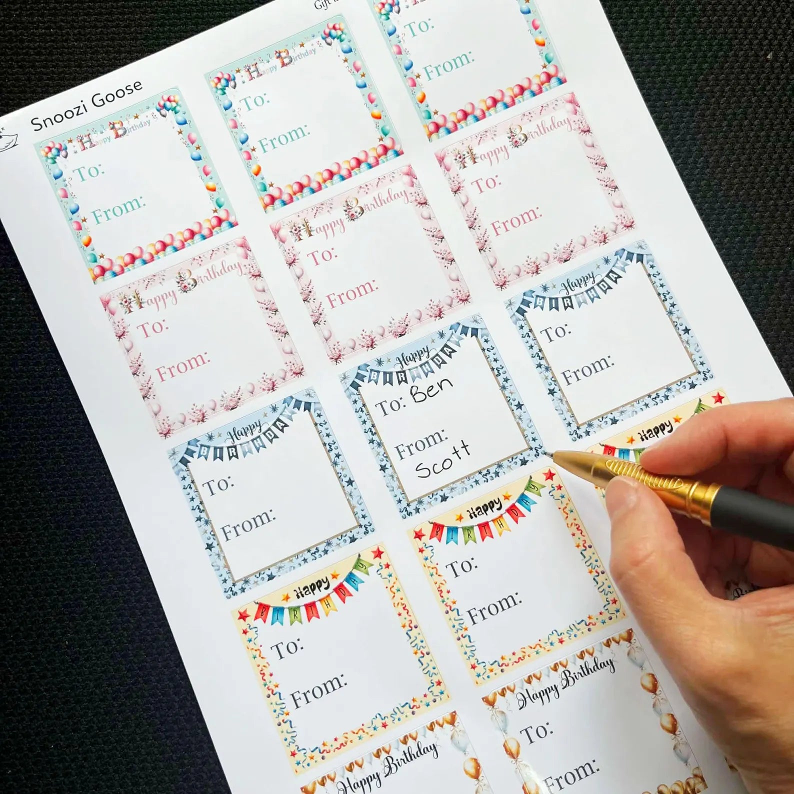 I started Snoozi Goose after realising how often I needed something quick for gifts that was not a card. I just wanted something small, easy and convinient similar to the small stickers that are sold at Christmas time. I searched but could not find them so I created my own and wanted to share them because I feel like there might be others out there like me who need this too.